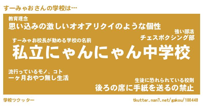 女子向けラノベタイトル風あだ名 | 『(仮)すーみゃおのやんごとなき事情』 |