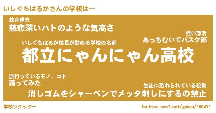 | 女子向けラノベタイトル風あだ名 | 『(仮)いしぐちはるかのやんごとなき事情』 |