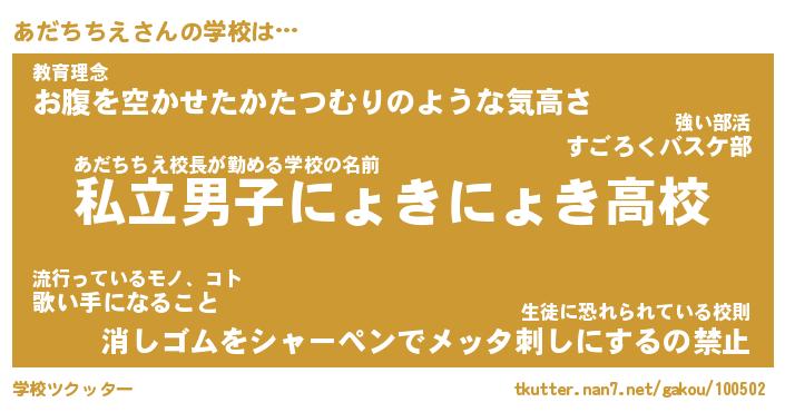 | 男性向けラノベタイトル風あだ名 | 『あだちちえの憂鬱』 |