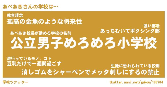 | 男性向けラノベタイトル風あだ名 | 『あべあきの憂鬱』 |