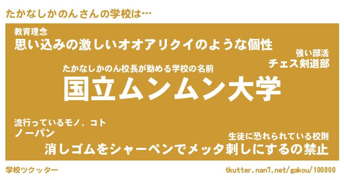| 男性向けラノベタイトル風あだ名 | 『たかなしかのんの憂鬱』 |