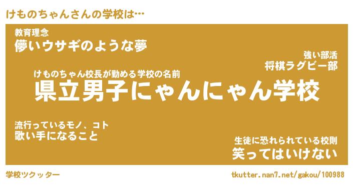 | ヒーロー風カッコイイあだ名 | 『スーパーケモノチャン』『炎刃騎士ケモ』 |