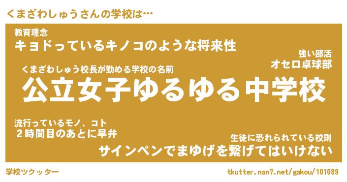 | 先生 | くまざわしゅう先生が勤める学校名『府立しゃくれ中学校』 |