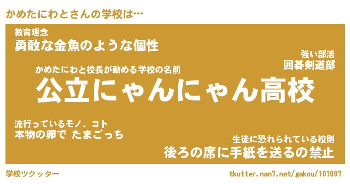| 伝説のあだ名 | 『伝説のスナイパーかめたにわと』 |