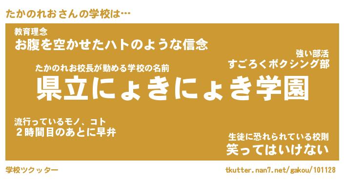| 男性向けラノベタイトル風あだ名 | 『たかのれおの憂鬱』 |