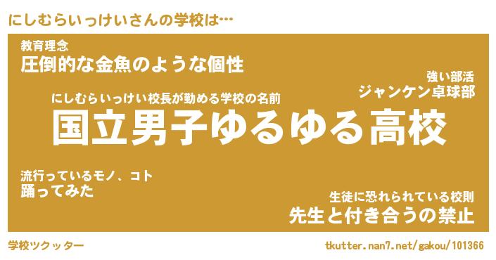 | ポケモン風あだ名 | 『ニシチュウ』『ニシムダネ』 |