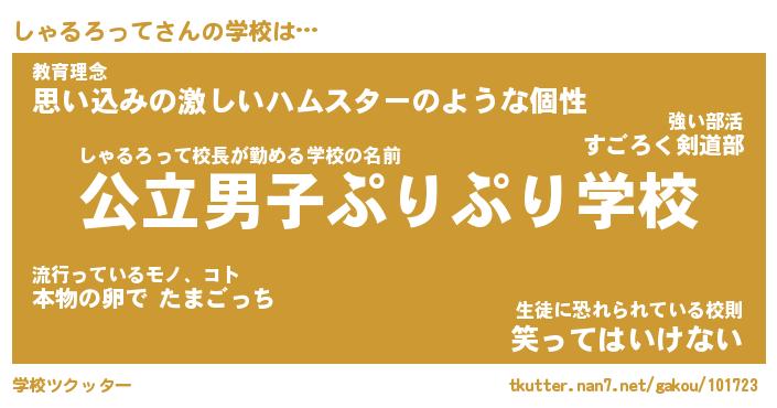 | 男性向けラノベタイトル風あだ名 | 『しゃるろっての憂鬱』 |