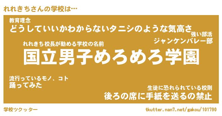 | 男性向けラノベタイトル風あだ名 | 『れれきちの憂鬱』 |