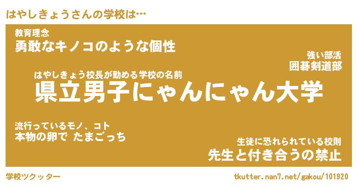 | 男性向けラノベタイトル風あだ名 | 『ハヤシキョウアートオンライン』 |