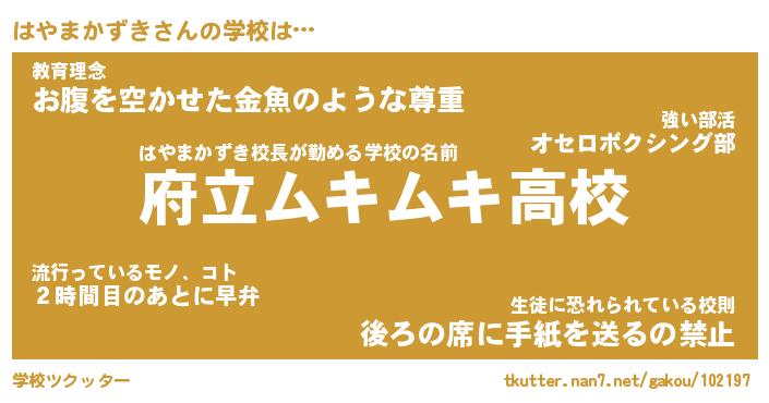 | 男性向けラノベタイトル風あだ名 | 『はやまかずきの憂鬱』 |