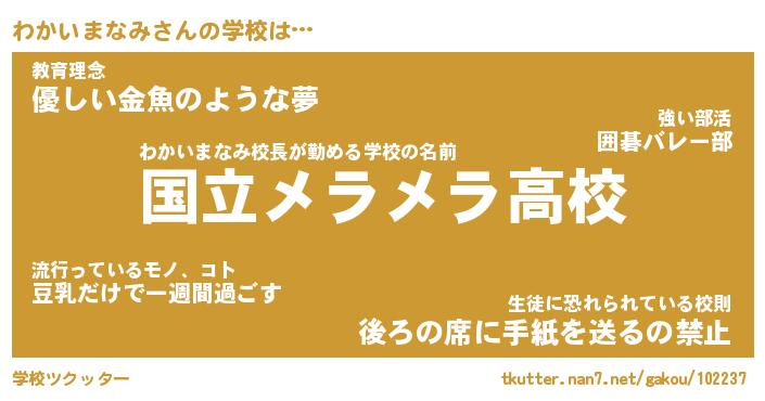 | 肩書あだ名 | 『わかいまなみ社長』『わかいまなみ担任』 |