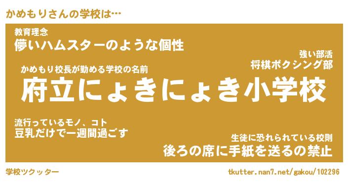| 意味不明あだ名 | 『ペロリンかめもり』『永久保存かめもり』 |