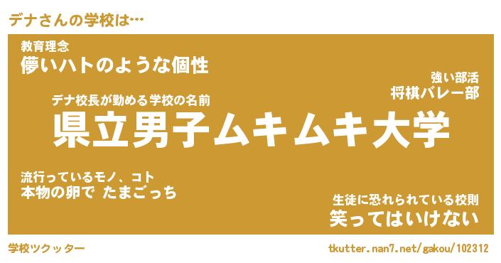 | ヘコむあだ名 | 『デナにー』『なまこ酢』『デナ太郎』 |