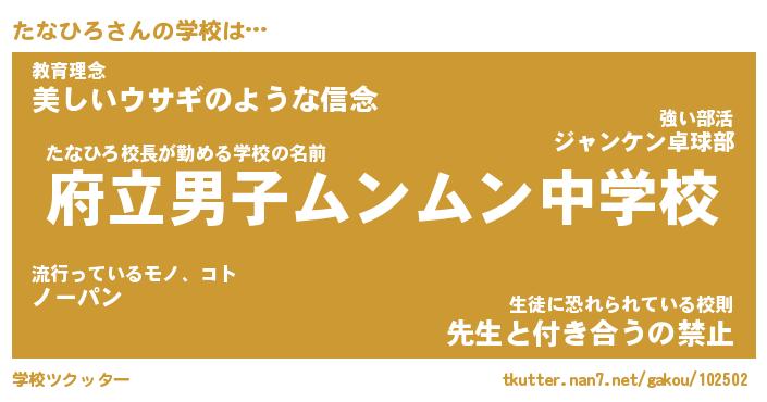 | ヒーロー風カッコイイあだ名 | 『スーパータナヒロ』『銀牙騎士タナ』 |