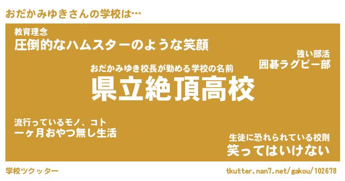 | 男性向けラノベタイトル風あだ名 | 『おだかみゆきの憂鬱』 |