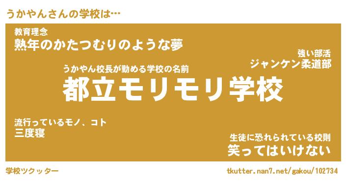 | 男性向けラノベタイトル風あだ名 | 『うかやんの憂鬱』 |