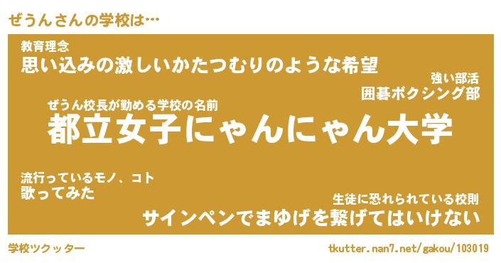 | ヘコむあだ名 | 『ぜうもー』『つくし』『ぜうっ子』 |