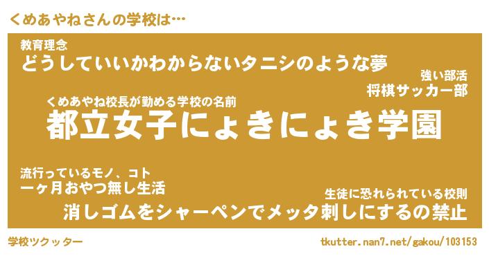 | ファンタジー風あだ名 | 『クメフェル』『エターナルクメアヤネー』 |