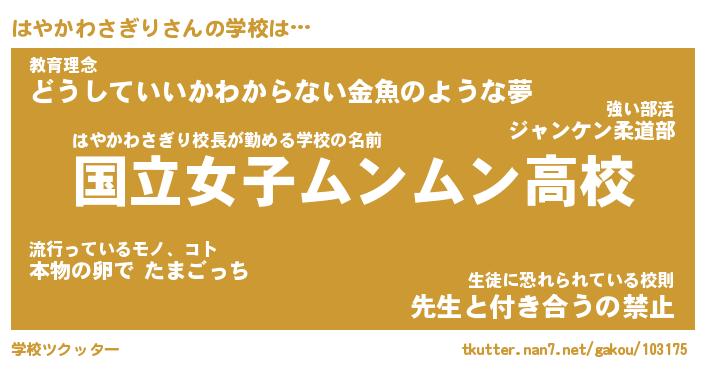 | ピコ太郎風あだ名 | 『ハコ四郎』『ピハ四郎』『ハヤ八郎』 |