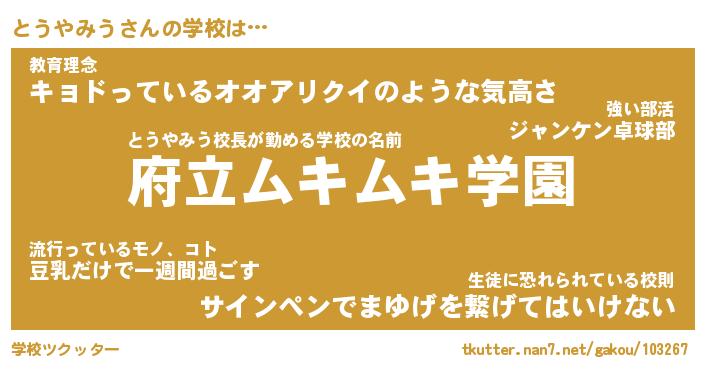 | ファンタジー風あだ名 | 『トウフェル』『エターナルトウヤミウー』 |