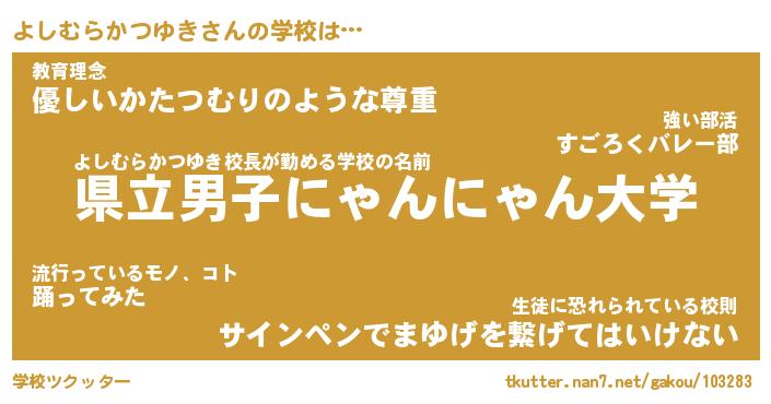| 女子向けラノベタイトル風あだ名 | 『よしむらかつゆき姫と円卓の騎士』 |