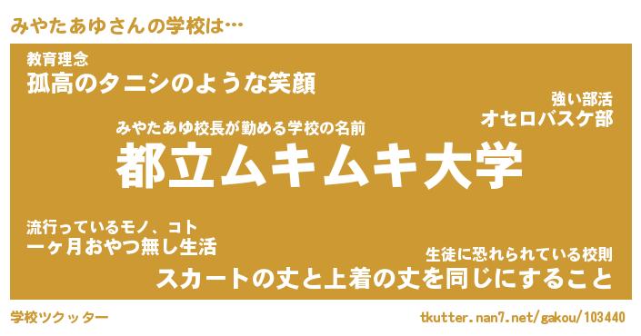 | ファンタジー風あだ名 | 『ミヤフェル』『エターナルミヤタアユー』 |