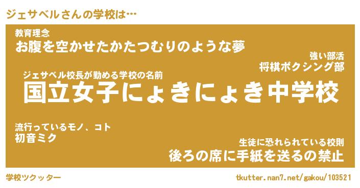 | 女子向けラノベタイトル風あだ名 | 『誰かこのジェサベルを説明してください! ~契約から始まるウェディング~』 |