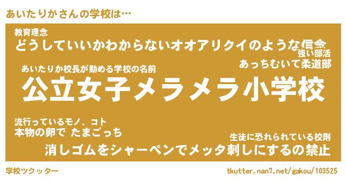 | 胡散臭い通販商品みたいなあだ名 | 『億万長者になれるブレスレット…その名も「あいたりか」』 |