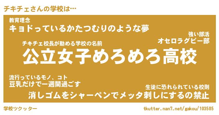 | 意味不明あだ名 | 『ペロリンチキチェ』『永久保存チキチェ』 |