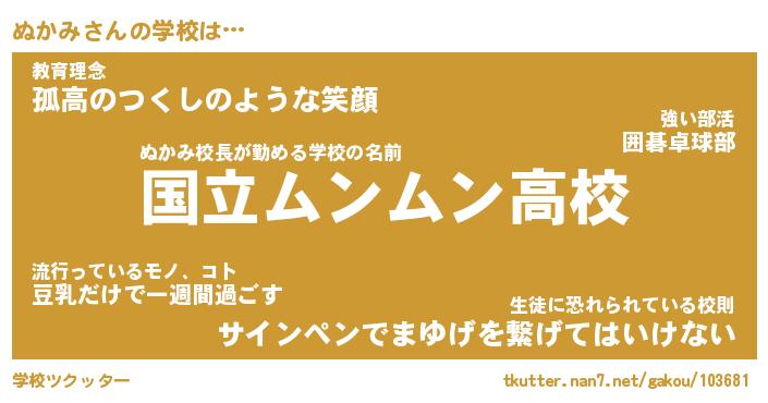 | ヘコむあだ名 | 『ぬかにゅー』『つくし』『ぬかを』 |