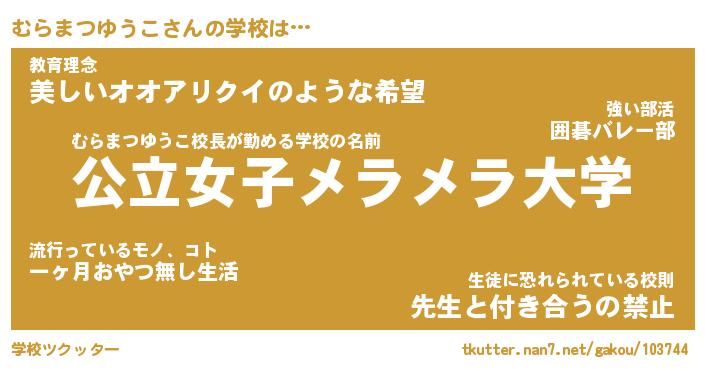 | 女子向けラノベタイトル風あだ名 | 『誰かこのむらまつゆうこを説明してください! ~契約から始まるウェディング~』 |