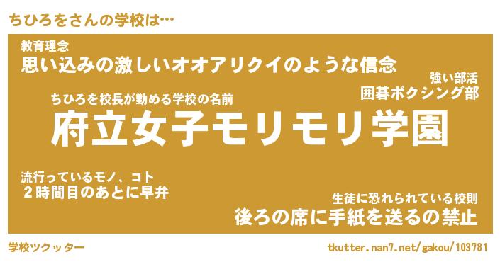 | ファンタジー風あだ名 | 『チヒフェル』『エターナルチヒロヲー』 |