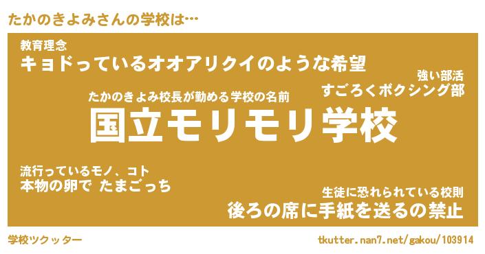 | 男性向けラノベタイトル風あだ名 | 『たかのきよみの憂鬱』 |