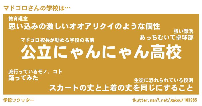 | 男性向けラノベタイトル風あだ名 | 『マドコロの憂鬱』 |