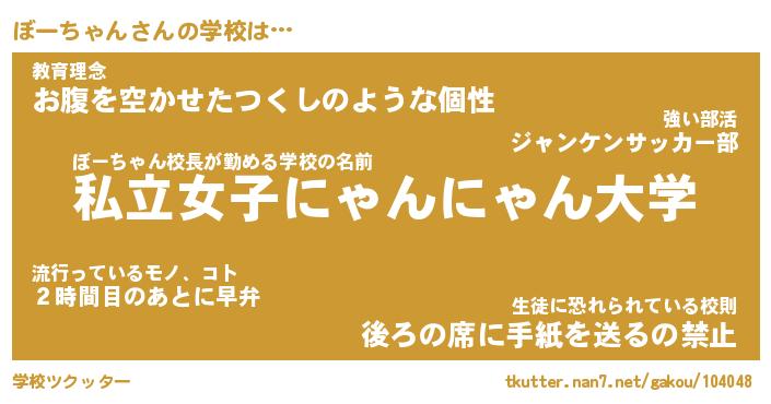 | ヘコむあだ名 | 『ぼーもー』『つくし』『ぼーぷりん』 |