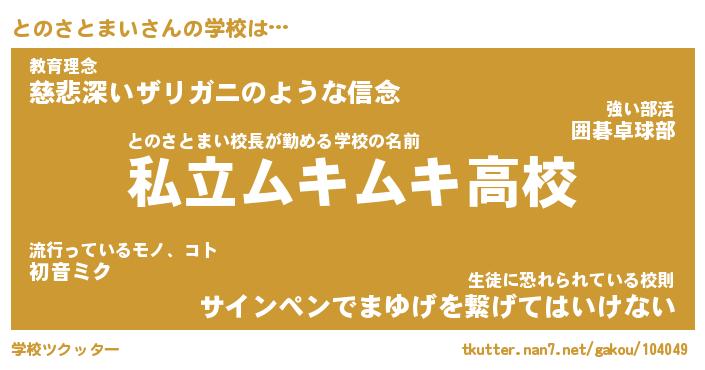 | 男性向けラノベタイトル風あだ名 | 『とのさとまいの憂鬱』 |