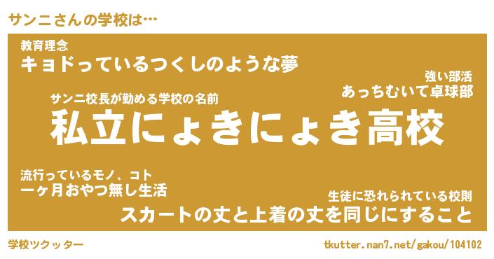 | ヒーロー風カッコイイあだ名 | 『スーパーサンニ』『ウルトラサンニマン』 |
