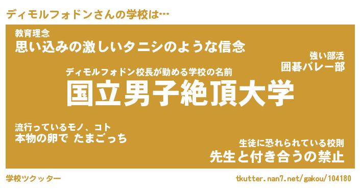 | 男性向けラノベタイトル風あだ名 | 『ディモルフォドンの憂鬱』 |