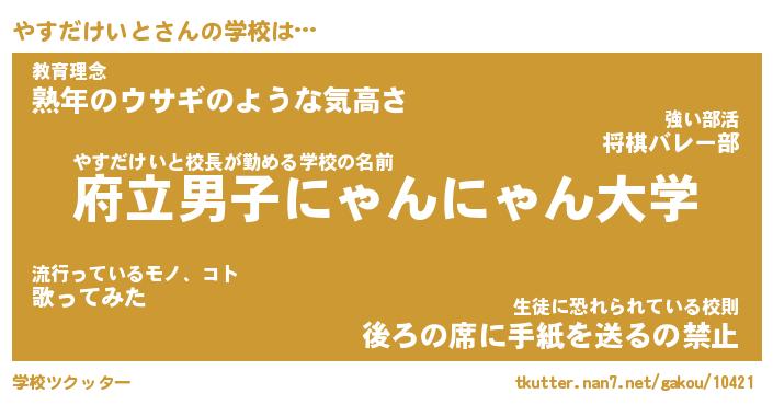 | ピコ太郎風あだ名 | 『ヤコ五郎』『ピヤ一郎』『ヤス次郎』 |