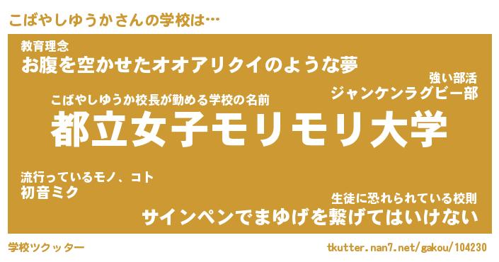 | 恥ずかしいあだ名 | 『プリティーこばやしゆうか』『こばちん』 |