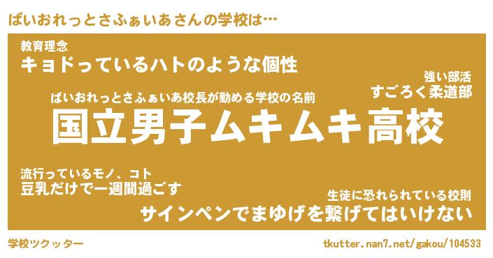 | 病院 | ばいおれっとさふぁいあ院長の病院名『府立黒光りクリニック』 |