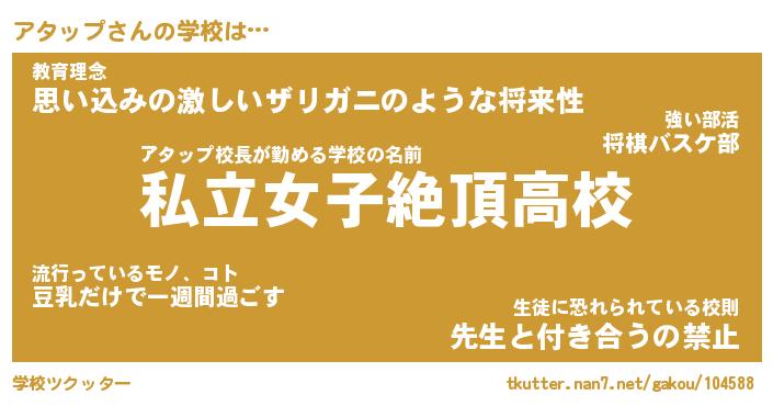 | 意味不明あだ名 | 『ペロリンアタップ』『永久保存アタップ』 |