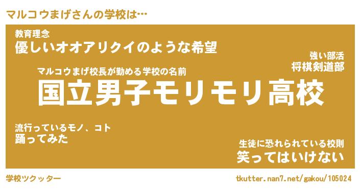 | マルコウまげ先生が勤める学校名『都立肉球高校』 |