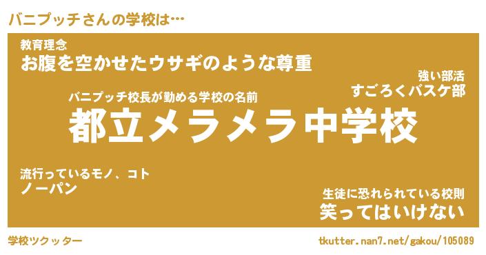 | ヒーロー風カッコイイあだ名 | 『スーパーバニプッチ』『暗黒騎士バニ』 |