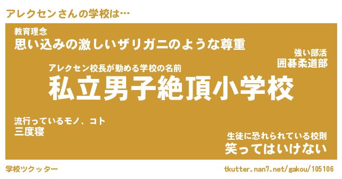 | 男性向けラノベタイトル風あだ名 | 『アレクセンの憂鬱』 |