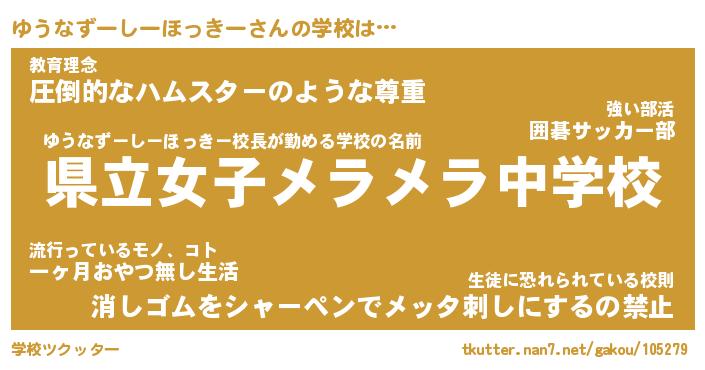 | 先生 | ゆうなずーしーほっきー先生が勤める学校名『町立猫耳中学校』 |