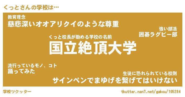 | 男性向けラノベタイトル風あだ名 | 『くっとの憂鬱』 |
