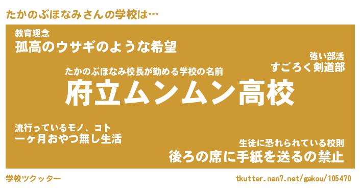 | ヘコむあだ名 | 『たかにゅー』『つくし』『たかお』 |