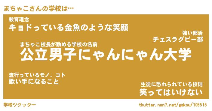 | 意味不明あだ名 | 『ペロリンまちゃこ』『永久保存まちゃこ』 |