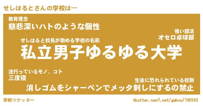 | 男性向けラノベタイトル風あだ名 | 『せしはるとの憂鬱』 |
